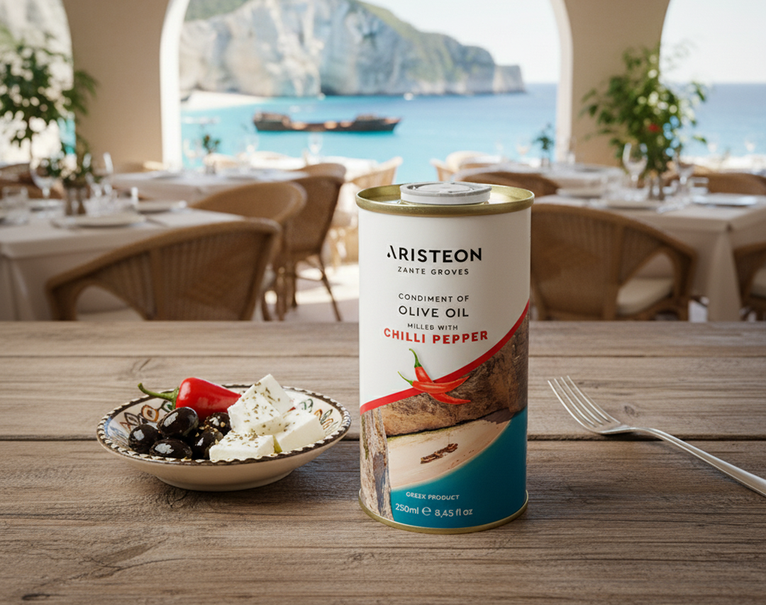 Oliwa z oliwek Aristeon przeniesie Cię na grecką wyspę, gdzie dni pachną dojrzałymi oliwkami, a wieczory niosą smak morza i ciepłego wiatru. Każda kropla tej oliwy to wspomnienie słońca i ziemi Zakynthos, zamknięte w złocistym płynie, który budzi zmysły i zatrzymuje czas.